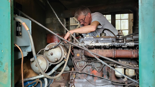 The ever able and knowledgeable John was under the bonnet of Mr. D where he said it was actually cooler than outside. Mr. D has started and run but there are still small things to connect up like some oil pipes which John was doing yesterday.